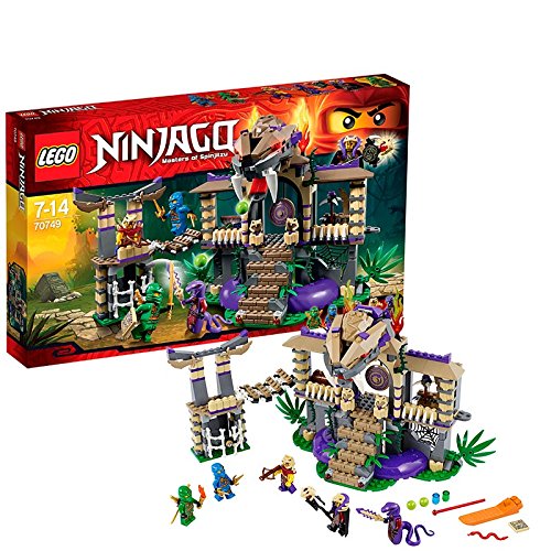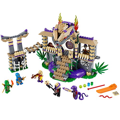 -. Feature : Deep in the jungle, Jay is being held captive by the Anacondrai. Find your way to their temple with Lloyd's map. / Once you get there, beware - Kapau'rai is on guard with his Anacondrai Blade, and Zugu is armed with a crossbow. Do you dare to Enter the Serpent? / There are traps everywhere, including hidden sP.R.Ing-loaded shooters in the stairs, poison balls dropping from the snake's mouth and a trapdoor! Search the caves for a second map with directions through the Anacondrai Temple. / Find your way across the suspension bridge to the P.R.Ison tower and free Jay! / Includes 5 mini-figures with assorted weapons and accessories: Lloyd, Jay, Chen, Kapau'rai and Zugu.