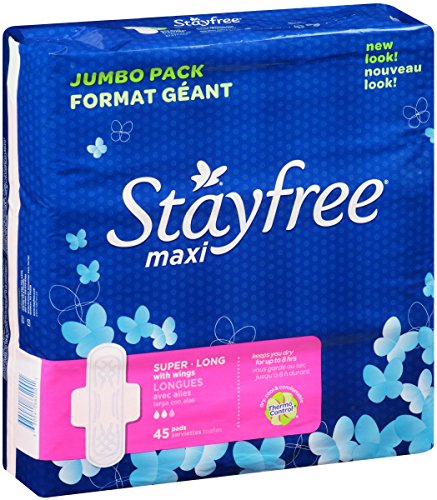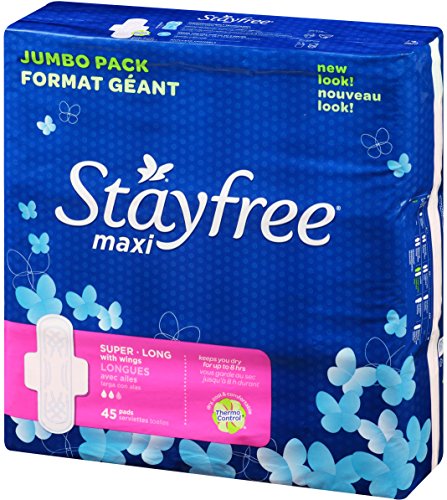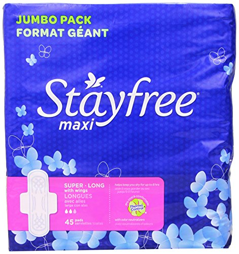 Stayfree Maxi Pads for Women with Wings, Super Long - 45 Count