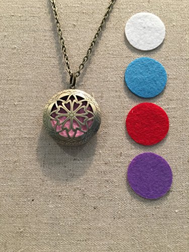 Essential Oil Pendant Diffuser Aromatherapy Necklace Jewelry Antique bronze Locket with 24" Chain ~ Elegant - Pendant Necklace For Aromatherapy On The Go! INCLUDES 5 WASHABLE Pads! A unique, locket style aromatherapy necklace so you can now wear your essential oils anywhere. •Every essential oil necklace INCLUDES 5 washable, highly absorbent synthetic felt pads •Your diffuser necklace is premium, high quality in antique silver for long life and durability. A piece of jewelry made to last a lifetime •Locket measures 1.25" wide and is attached to 24" chain. •Buy with confidence!