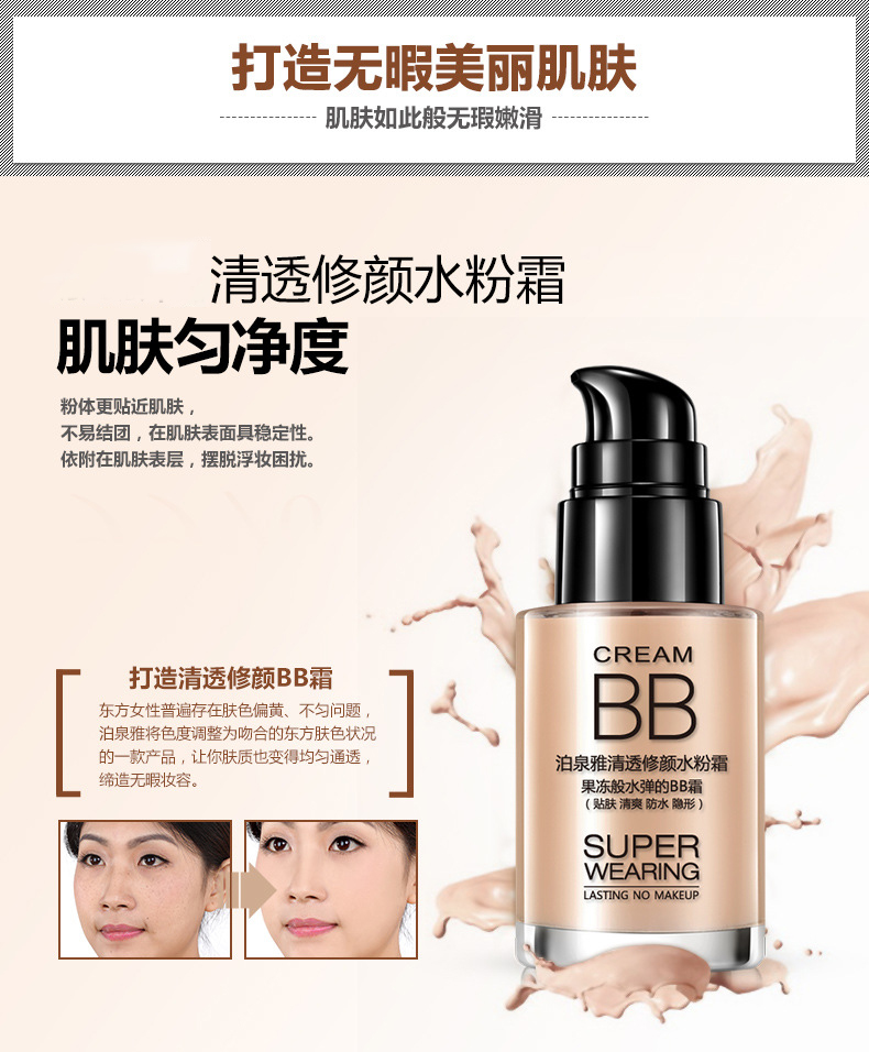 Easily conceal facial flaws and pores, isolated resist sunshine and daily environmental pollution damage.