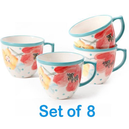 -. Title : The Pioneer Woman Flea Market 16 oz Footed Decorated Mugs, Set of 8 (Vintage Bloom)