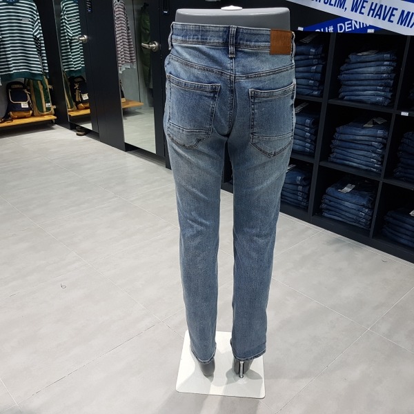 베이직한 L톤의 캣브러시 데님.전체적인 핸드브러시 작업으로 깔끔하지만 원단결이 도드라져 옷이 밋밋하지 않고 멋스러움.
