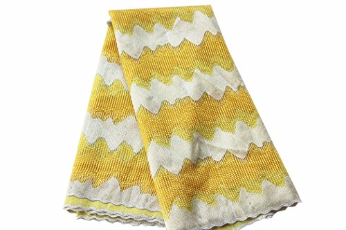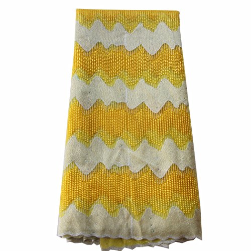 pqdaysun 5 Yards African Net Lace Fabrics Nigerian French Fabric Embroidered and Rhinestones Guipure Cord Lace F50367 (yellow)