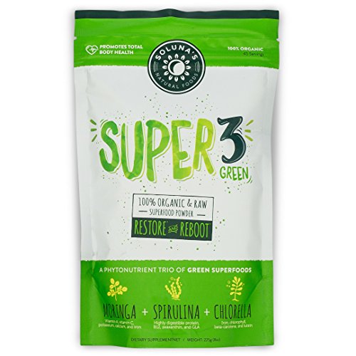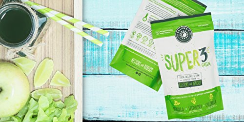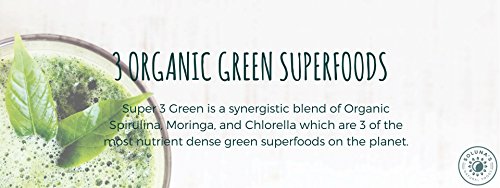 -. Title : Super 3 Green - Organic and Raw Greens Superfood Powder, Spirulina, Chlorella, and Moringa Leaf (45 Servings)