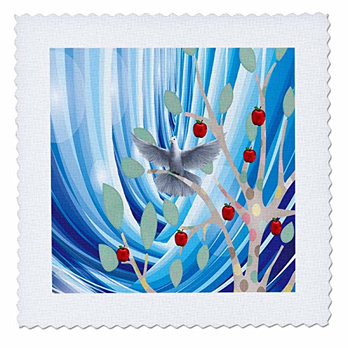 3dRose qs_202208_2 White Dove in Apple Tree, Blue Abstract Quilt Square, 6 x 6"