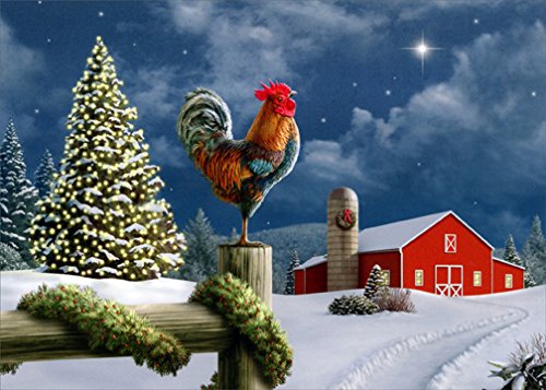 Rooster on Fence - LPG Box of 18 Christmas Cards