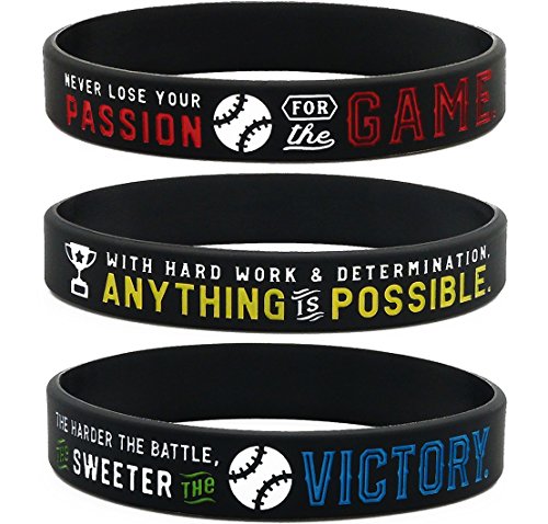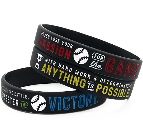 - These silicone rubber wristbands are a suitable giveaway gift for baseball team members and fans, and are ideal as party favors for baseball birthday parties and team gatherings. Celebrate your team spirit by sharing these uplifting wristbands with encouraging words and inspirational quotes.