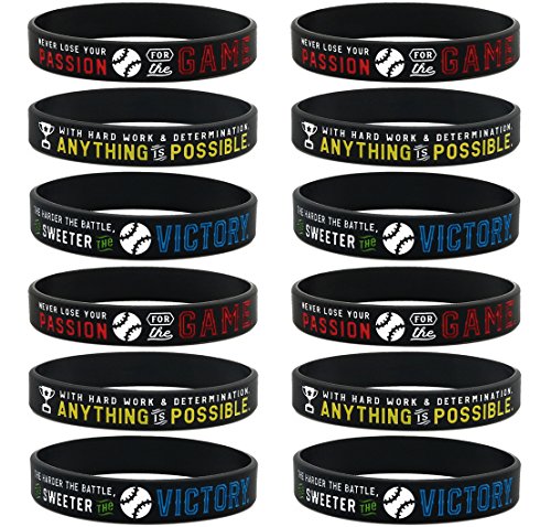 - Bulk pack of 12 baseball silicone bracelets with motivational messages and positive affirmations for baseball players, coaches, and fans