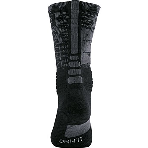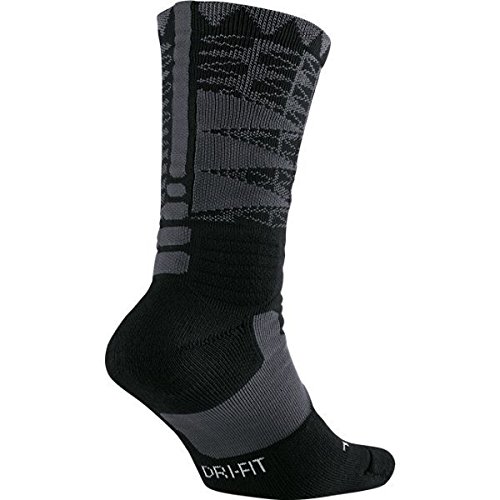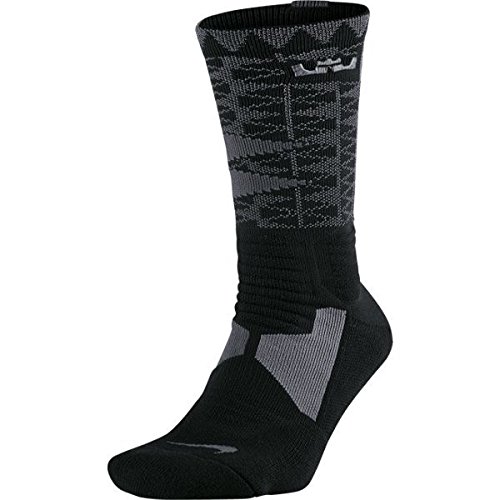 NIKE LEBRON JAMES HYPER ELITE DRI-FIT CUSHIONED CREW BASKETBALL SOCKS (ANTHRACITE GREY/BLACK)