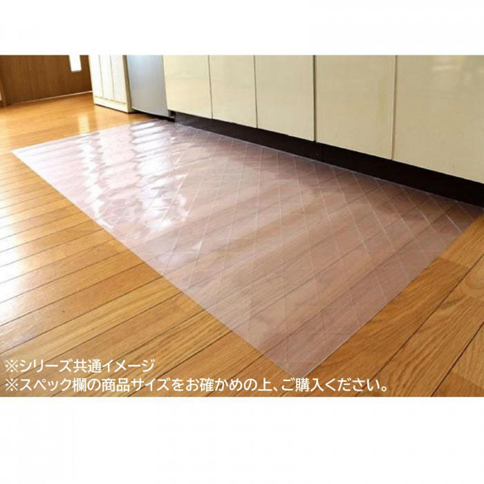 エンボス加工+高周波キルティングの複合加工により、機能性とデザイン性を兼ね備えたキッチンマットです。半透明なのでフローリングのイメージを損なわずキッチン空間になじみます。汚れがついても拭くだけで簡単に掃除ができるので、長期間使用していただくことができます。