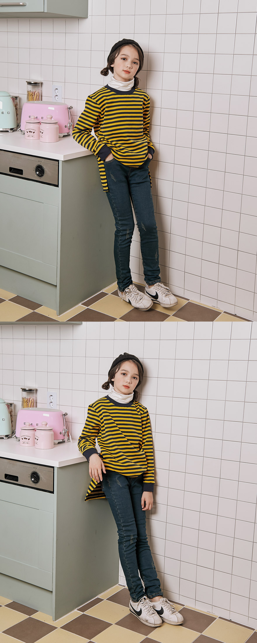 | | 단위:cm | 사이즈 Size 尺寸 | 총기장 Total length 總長度 | 가슴반품 Chest width 胸部幅 | 소매길이 Sleeve length 袖子 | | 9호 (7~8 세) | 66cm | 41cm | 48cm | | 11호 (9~10세) | 71cm | 43.5cm | 50.5cm | | 13호 (10~11세) | 76cm | 46cm | 53cm | | 15호 (12~13세) | 81cm | 48.5cm | 55.5cm | | 17호 (13~14세) | 86cm | 51cm | 58cm | 사이즈는 측정하는 방법이나 위치에 따라 1~3cm 가량 오차가 생길 수 있습니다. There may be a 1-3cm difference depending on the measuring method/location. 量定根据不同可能有1至3cm差有。 |