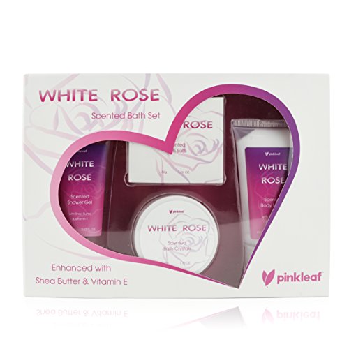 Mothers Day Bath and Body Set - Spa Gift Basket Love White Rose Fragrance by Pinkleaf - Bath and Body Gift Set Floral Scented Shower Gel & Lotion with...