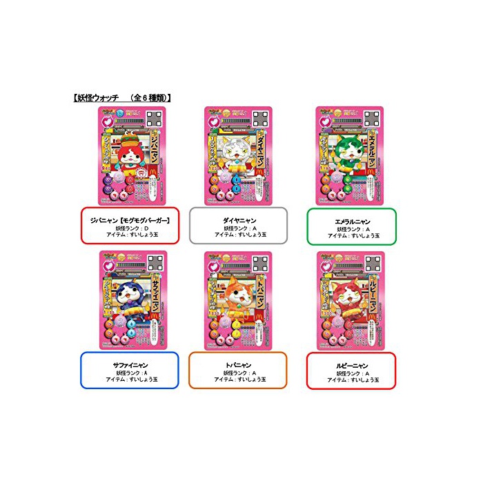 원본상품명: 妖怪ウォッチ マクドナルド限定 ともだちウキウキペディア 全6種セット MYW-007 ジバニャン【モグモグバ?ガ?】/ MYW-008 サファイニャン / MYW-009 エメラルニャン / MYW