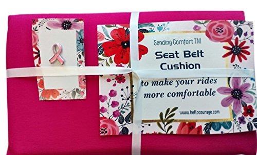 Deluxe Mastectomy Lumpectomy Cushion Seat Belt Chemo Port Surgery Breast Cancer Gift Fushia Pink with Inspirational Magnet by Sending Comfort TM