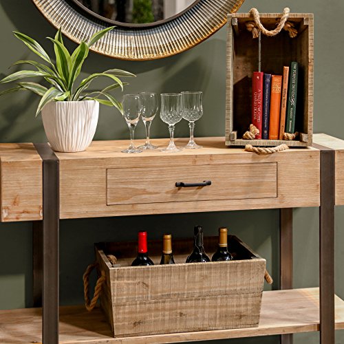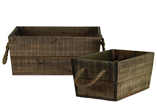 Urban Trends 35132 Rectangle Crate with 2 Rope Handles Weathered Wood Finish (Set of 2), Brown, 2 Piece