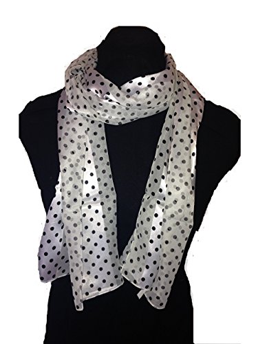 Product DescriptionWhite with black small spot thin pretty scarf with faux chiffon and satin stripe design. Great for any outfit lovely gift.0