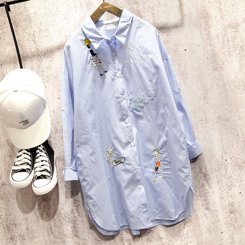 | ■产品名称:清新文艺刺绣条纹衬衫 | ■颜色选择:白色 蓝色条纹 | |