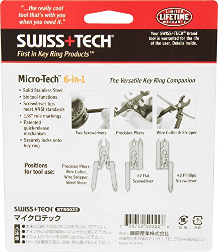 Swiss+Tech ST50022 Polished SS 6-in-1 Key Ring Multitool with Screwdrivers, Pliers, Wire Cutter/Stripper