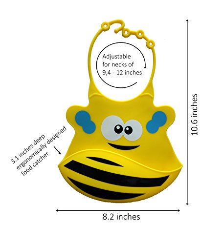 Binding : Apparel Product Description Bumble Babies feeding bibs are fun, easy to use and ergonomically designed. The silky soft silicone is non rigid making it sit comfortably against your baby with a large food catcher for unnecessary mess. The neck clasp is soft against the child's neck and easily adjustable. The bibs are non toxic, BPA Free and waterproof. Easy to clean, durable and dishwasher friendly this product can be easily rolled up for convenience when going out with your baby. Everyone will love the original and cute animal designs including your baby girl or boy! 0