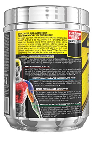 ReleaseDate : 2017-12-15 Studio : Iovate Health Sciences Incorporated Publisher : Iovate Health Sciences Incorporated Binding : Health and Beauty Product Description All new VaporX5 Next Gen is a pre workout that delivers unparalleled energy, extreme muscle pumps and performance, a surreal sensory experience plus scientifically validated muscle building power! This intense formula has everything you want in a pre workout and nothing you don't - zero under dosed key ingredients or fillers. VaporX5 Next Gen pre workout powder delivers uncompromising potency and power for the best workouts of your life! For the ultimate pre workout experience, VaporX5 Next Gen features a unique blend of premium sensory ingredients and a neurotransmitter precursor. The powerful combination of choline, theanine and Alpinia officinarum provides a unique sensory experience, while a research-inspired dose of a precise caffeine molecule delivers unbelievable energy focus. 0
