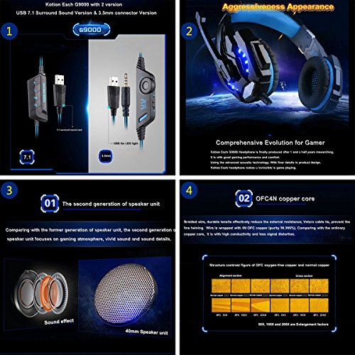 KOTION EACH G9000 USB 7.1 Surround Sound Versions Gaming Headset