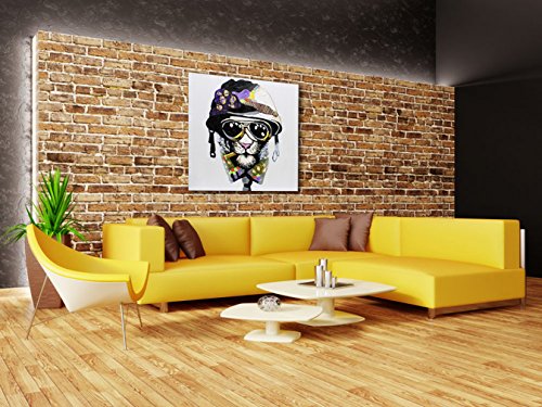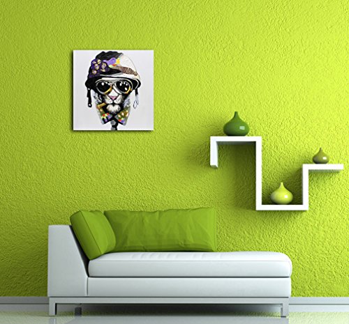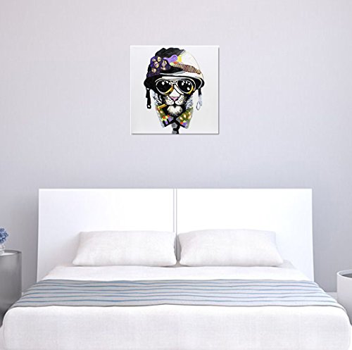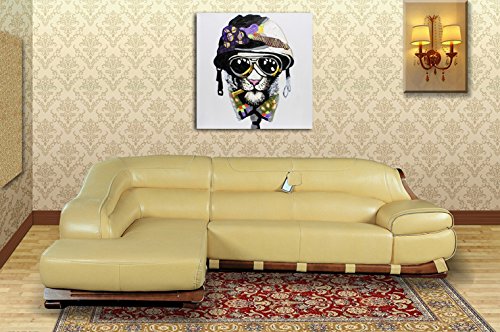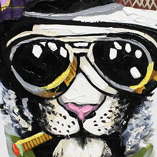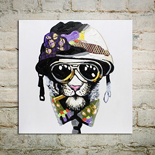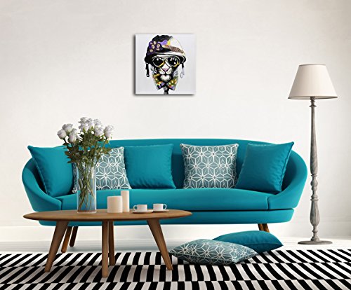 -. Title : Fokenzary Hand Painted Painting Cool Dog with Helmet and Sunglasses on Canvas Wall Decor Framed Ready to Hang