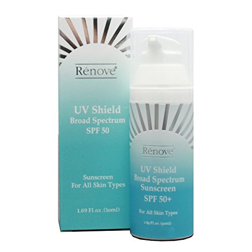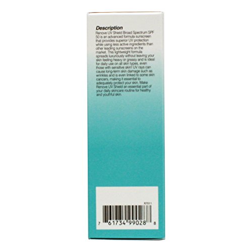Renove UV Shield Broad Spectrum SPF 50 is an advanced formula sunscreen that provides superior UV protection while using less active ingredients thatn other leading sunscreens on the market. This lighweight formula spreads luxuriously without leaving your skin feeling heavy or greasy and is ideal for daily use on all skin types, even those with sensitive skin! UV rays can cause long-term skin damage such as wrinkles and is even linked to some skin cancers, making it essential to adequtely protect your skin. Make Renove UV shield an essential part of your daily skincare routine for healthy and youthful skinFeature