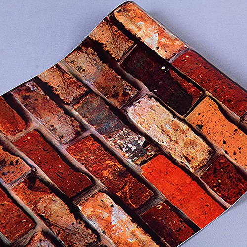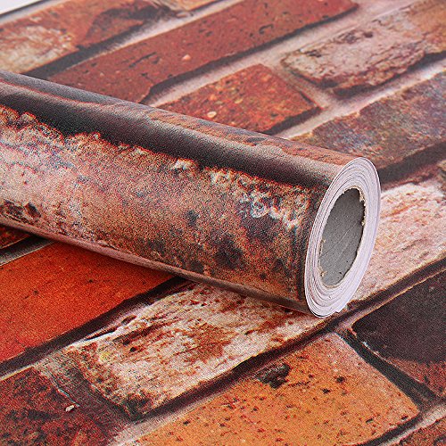 SimpleLife4U Country Rustic Brick Shelf Drawer Liner Prepasted Contact Paper Coffee Shop Wall Sticker 17.7inch by 9.8 Feet