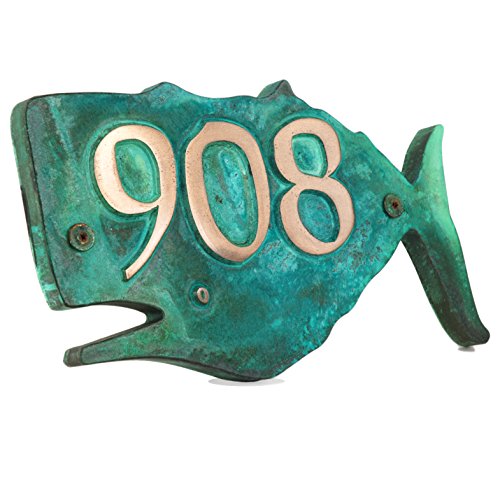 -. Title : Whale House Numbers Plaque 14x8 - Raised Bronze Verdi Metal Coated Address Sign