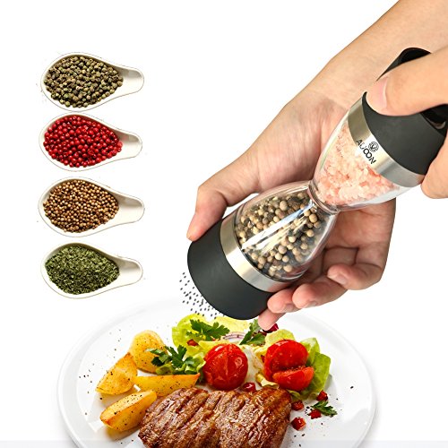 2-IN-1 Double-ended Manual Pepper & Salt Grinder, Pepper & Salt Mill Shaker With Ceramic Grinding, BPA Free Plastic, Importfood Grade