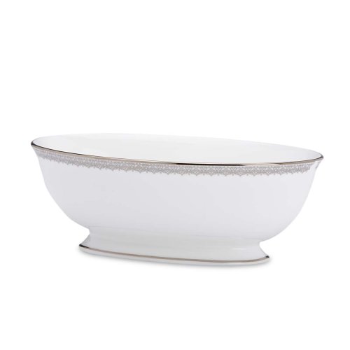 With its low-to-the-table design, this bowl is perfect for serving soups and saucy pastas. And with its lace motif and platinum trim, the bowl is perfect for more formal table settings.Feature