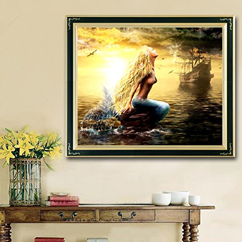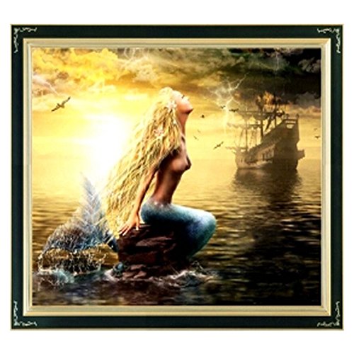 Golden Panno 11ct Counted Cross Stitch Kit Needlework for Mermaid in the Sea Needlecraft for Portait (63x51cm fine printed)