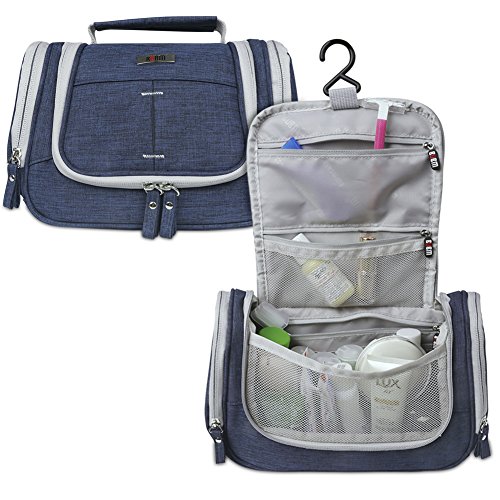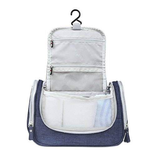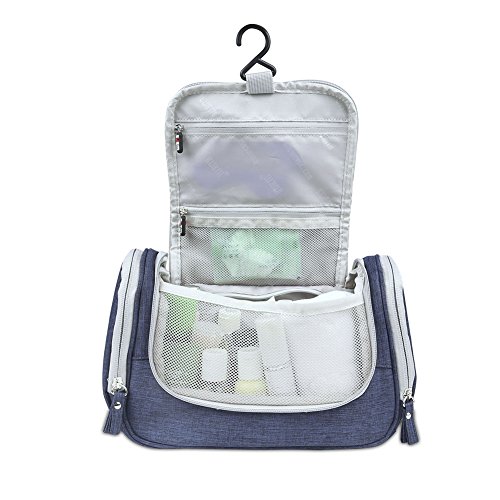 BUBM Hanging Toiletry Bag - Travel Kit Organizer Bag for Women Makeup & Men Grooming, Blue