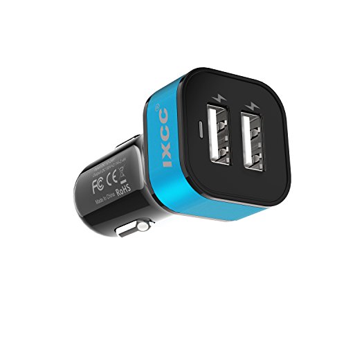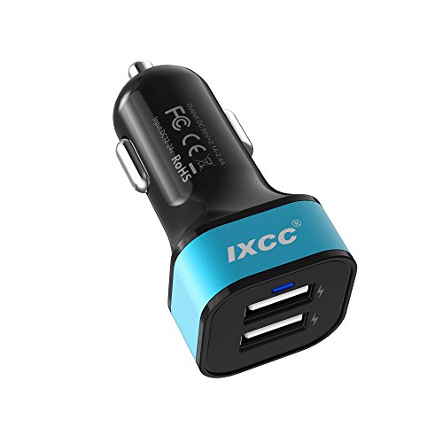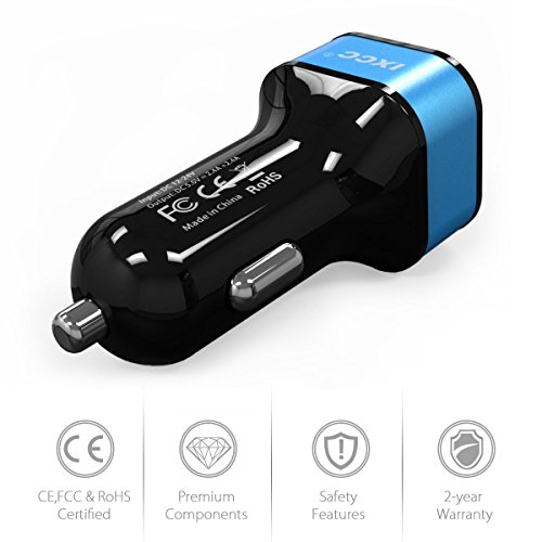 [ 50% OFF !!! ] iXCC 24W/4.8A 2 Port Car Charger, Fast Car Charger Adapter for iPhone 7s 6s Plus, USB Car Charging Port for Galaxy S8+ S7 S6 Edge, iPad Pro Air mini, Note 5, LG, Nexus and More - Blue