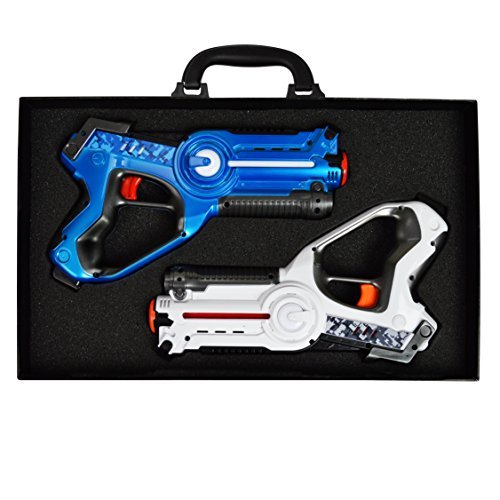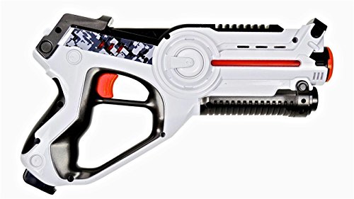 Legacy Toys presents The Premium Multiplayer Laser Tag Experience. Capable of a laser range exceeding 120 feet, and 4 completely unique team settings, players both young and old will enjoy countless hours of Laser Tag Nirvana. Switch between the 4 separate blasters in your arsenal. Each blaster has its own strengths and weaknesses in relation to damage, range, and reload time. Tap the butt of the blaster to reload, and the built in speakers will notify you that your blaster has been reloaded. Your health is located on the side of the blaster, next to the button. Plus, your blaster is the target. Gone are the days of strapping a vest to your body. All you need to play is a group of people and this Laser Tag Set.Feature