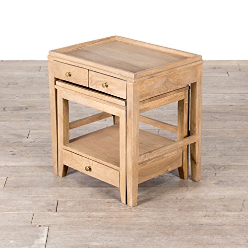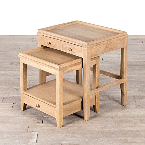 -. Brand : Zallzo -. Color : Brown, Tan -. Department : unisex-adult -. EAN : 0705322438004 -. Feature : Dimensions: 17.25" D x 23.75" H x 22" W / Materials: Plantation-Cut Mango Wood / Set includes two tables / Color: Natural Wood Finish / Handmade in India by artisans -. Label : Zallzo -. Manufacturer : Zallzo -. ProductGroup : Furniture -. ProductTypeName : HOME_FURNITURE_AND_DECOR -. Publisher : Zallzo -. Size : 17.25" D x 23.75" H x 22" W -. Studio : Zallzo -. Title : Set of 2 Franco Nesting Side Tables (Natural Color) -. UPC : 705322438004
