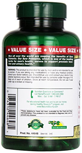 -. Title : Nature's Bounty, Saw Palmetto 450 mg Natural Capsules, 250 ct
