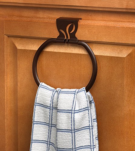 Spectrum Diversified Leaf Over-The-Cabinet Door Towel Ring, Bronze