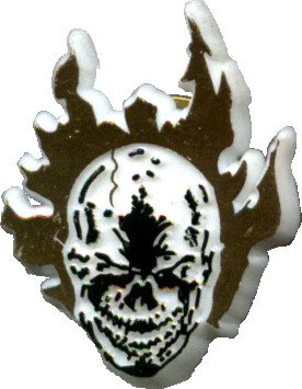 (Square Deal Recordings Supplies)/Accessories/Hair Accessories/DIRECT FROM USA/Ghost Rider - Flaming Skull - 1" x 1 1/4" Plastic Pin - DISCONTINUED, LIMITED QUANTITY!