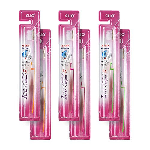 CLIO ICE COMPACT-R, Ultra Soft Toothbrush with Tapered and Rounded Bristle, Deep Clean - 6 Pack (Colors Vary - Random Selection)