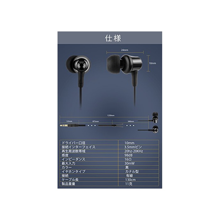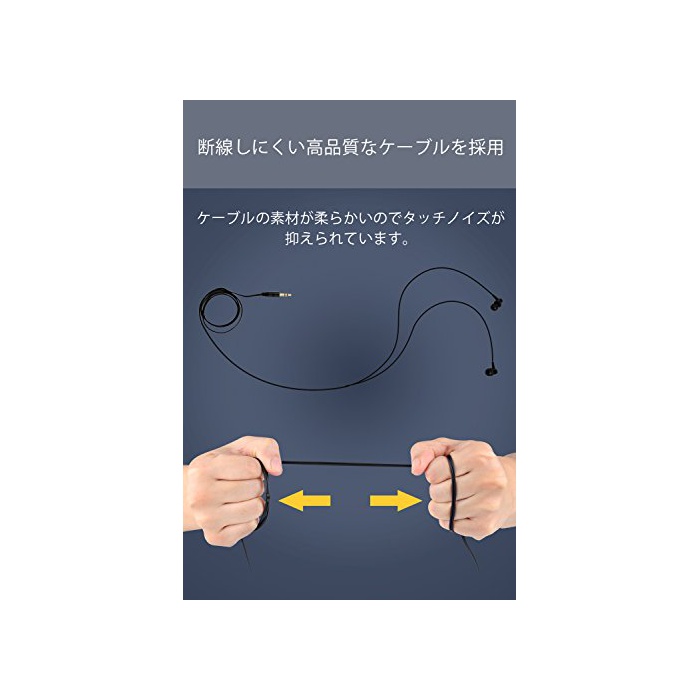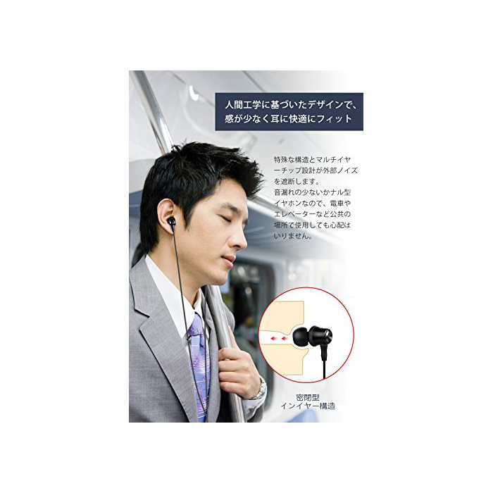 【가격 이상의 음질】특정의 음역을 강조하는 일 없이,다카나카 저 구석구석까지 밸런스가 좋은 사운드에 음원을 충실하게 재현해 줍니다.가나《루》형으로 방음성이 높고, 또한 소프트한호 형케이블(약1.2m)를 사용하고 있고 사용중에 케이블이 문지르 #제에 울리게 되는 터치 노이즈도 꽤 저감되어 있습니다. 방음성과 음누락 방지에 뛰어나기 때문에 전철이나 엘리베이터 등 공공의 장소에서 사용해도 걱정 들어 가지 않습니다. .