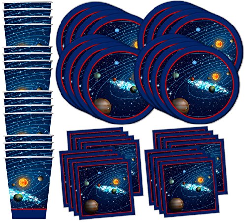-. Title : Solar System Outer Space Birthday Party Supplies Set Plates Napkins Cups Tableware Kit for 16 by Birthday Galore