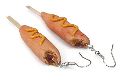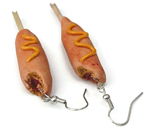 -. Title : Corn Dog with Mustard Carnival Fake Food Earrings