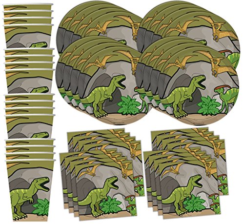 -. Title : Roaring Dino T-Rex Dinosaur Birthday Party Supplies Set Plates Napkins Cups Tableware Kit for 16 by Birthday Galore