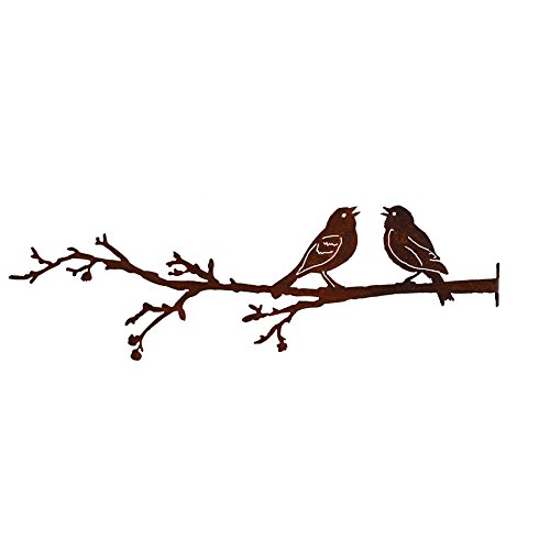 Elegant Garden Design Love Birds on Branch, Steel Silhouette with Rusty Patina