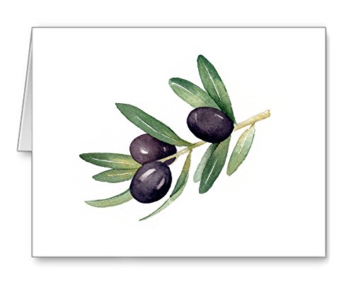 -. Feature : "Olive Branch" artwork by watercolor artist DJ Rogers. / Note card size is 4.25 x 5.5 inches / Matching white envelopes included. / Note cards are blank inside for your personal message. / Suitable for framing.