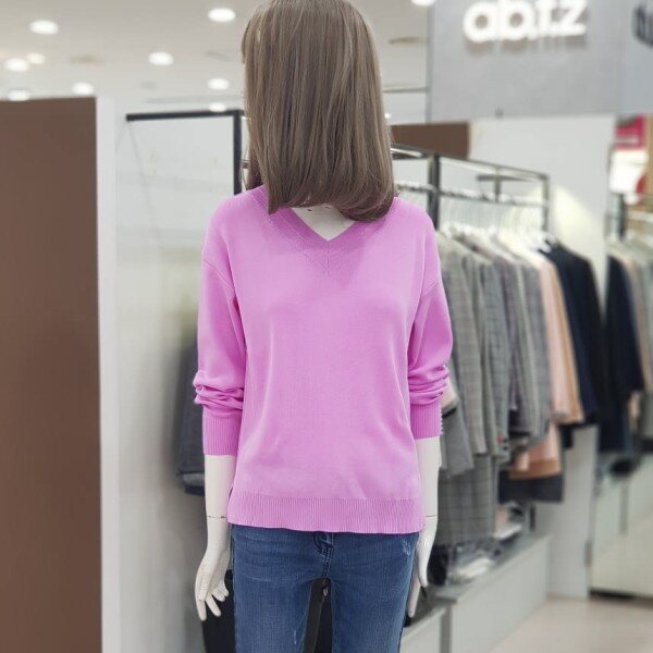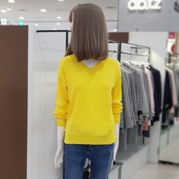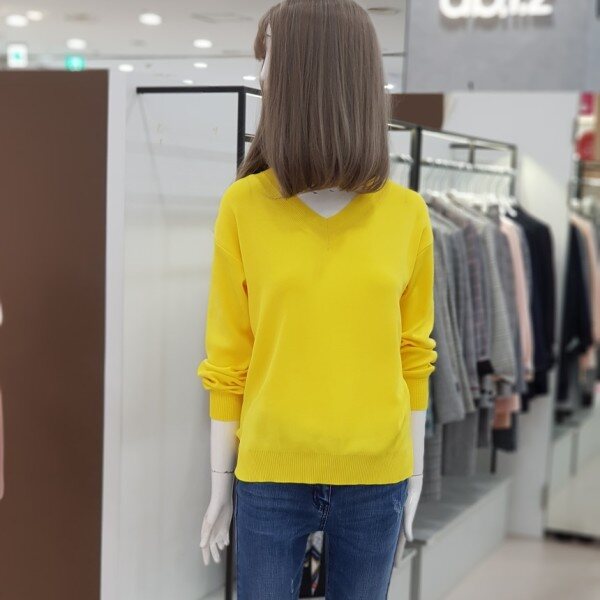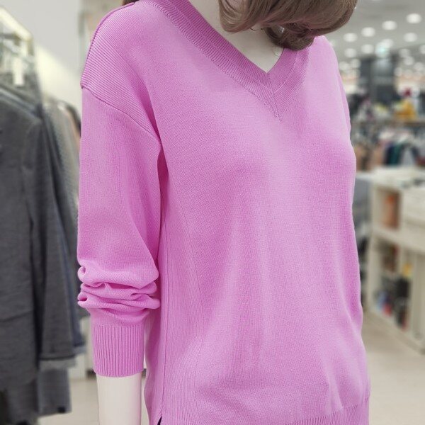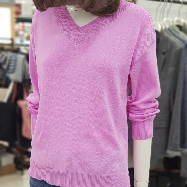 여름까지 입기 좋은 브이넥 니트입니다.편안한 신축성과 화사한 색감이 매력적이며 한 여름까지 입으셔도 무방할 정도로 적당한 두께감입니다.데일리하게 이옷저옷에서 포인트로 입기 좋아요.