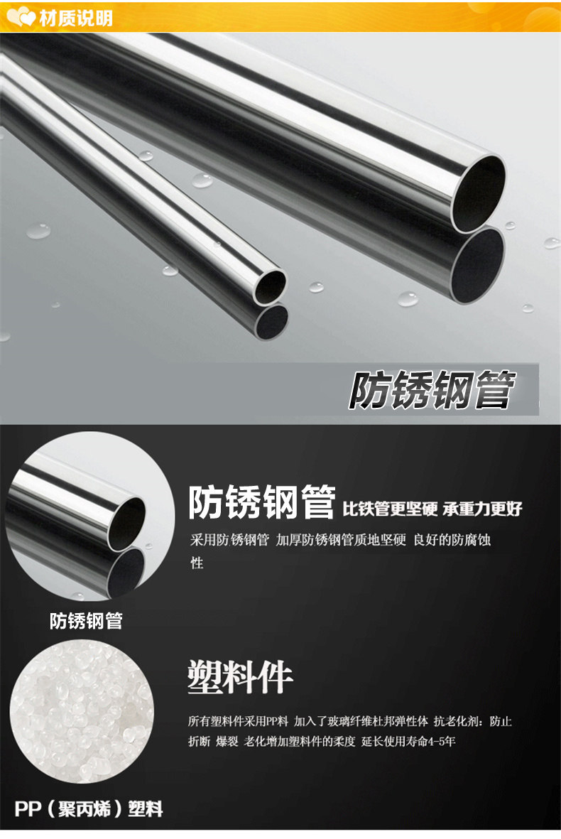 Material: rust-proof steel + quality PP