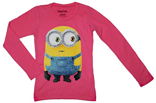 -. Binding : Apparel -. Brand : Universal -. Color : Pink -. Department : girls -. Feature : Girls LONG sleeve minion tee / 100% COTTON / HOT PINK / Super cute BOB graphics with glittery accents on his glasses / Officially licensed -. ProductGroup : Apparel -. ProductTypeName : SHIRT -. Title : Minions Movie "Hey Bob" Girls Pink Long Sleeve Graphic T Shirt