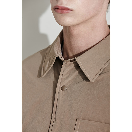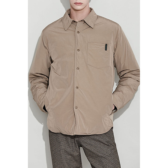 - 솔리드 베이지 컬러의 남성 셔츠형 점퍼.
